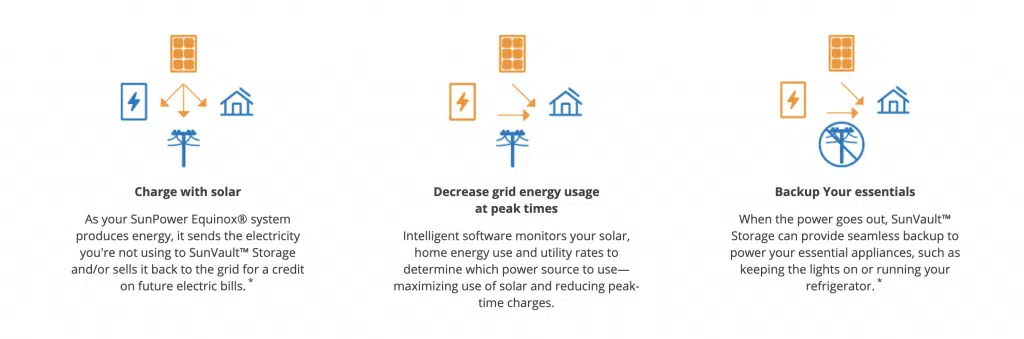 use that energy to power your home and charge the SunVault™ Storage system. With this battery storage system, you can easily control the usage of energy throughout your home, no matter what is going on outside. To learn about the ins and out of SunPower’s SunVault storage system, watch the short video below.